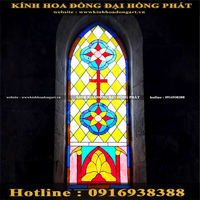 * Quý khách có thể chọn hoa văn có sẵn hoặc yêu cầu Đại Hồng Phát tư vấn và thiết kế mẫu kính nhà thờ theo ý tưởng của Quý khách. Hoặc Quý khách cũng có thể gửi mẫu để Đại Hồng Phát sản xuất theo mẫu.